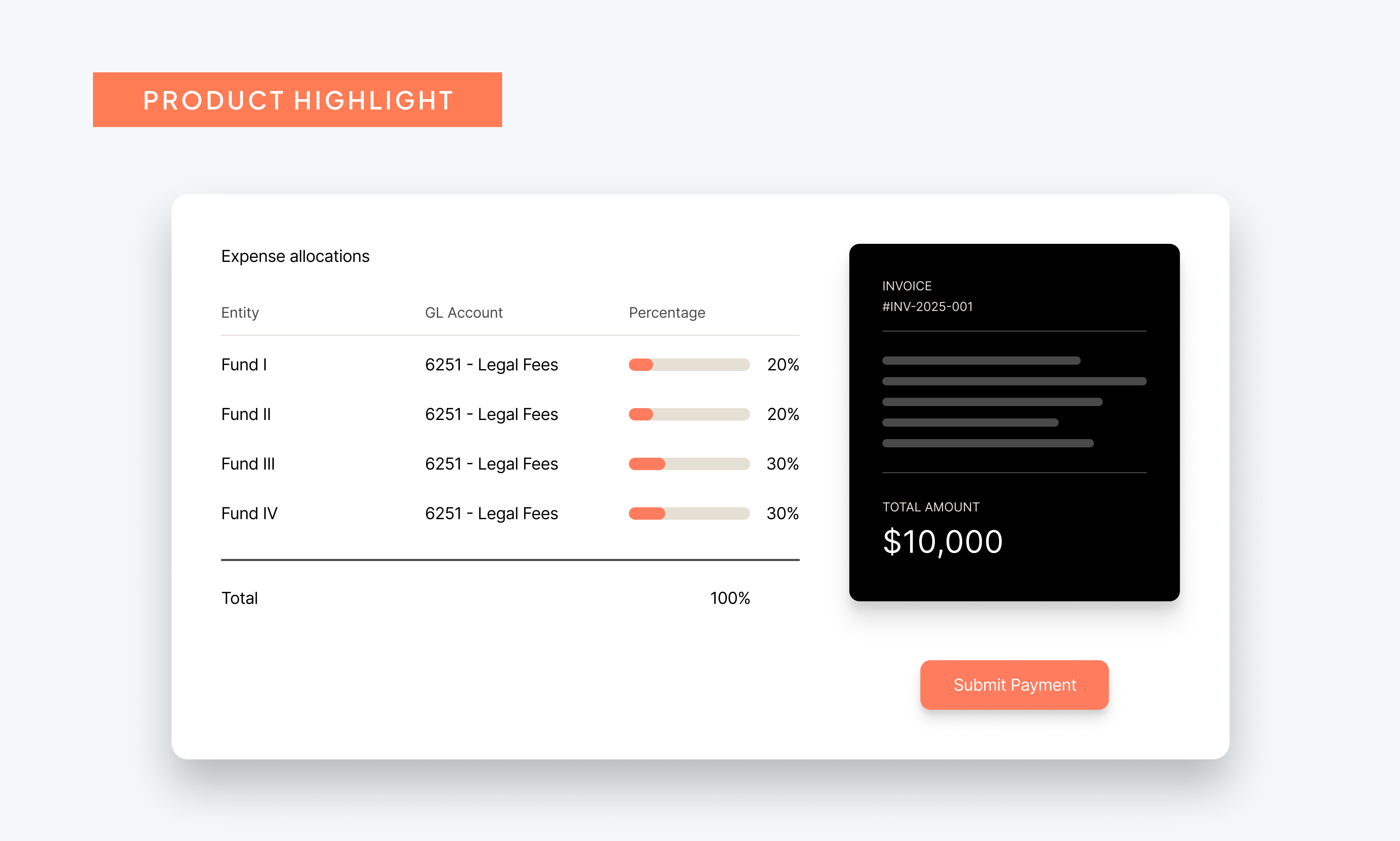 By capturing allocation details at the time of payment, you can easily recover eligible expenses to the management company without the guesswork. For extra assurance, every allocation creates an automatic audit trail showing how and why each expense was split, giving you documentation that satisfies both auditors and investors.
